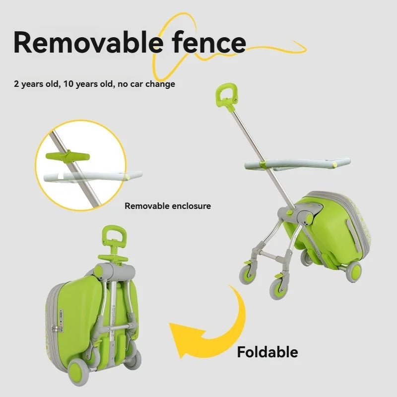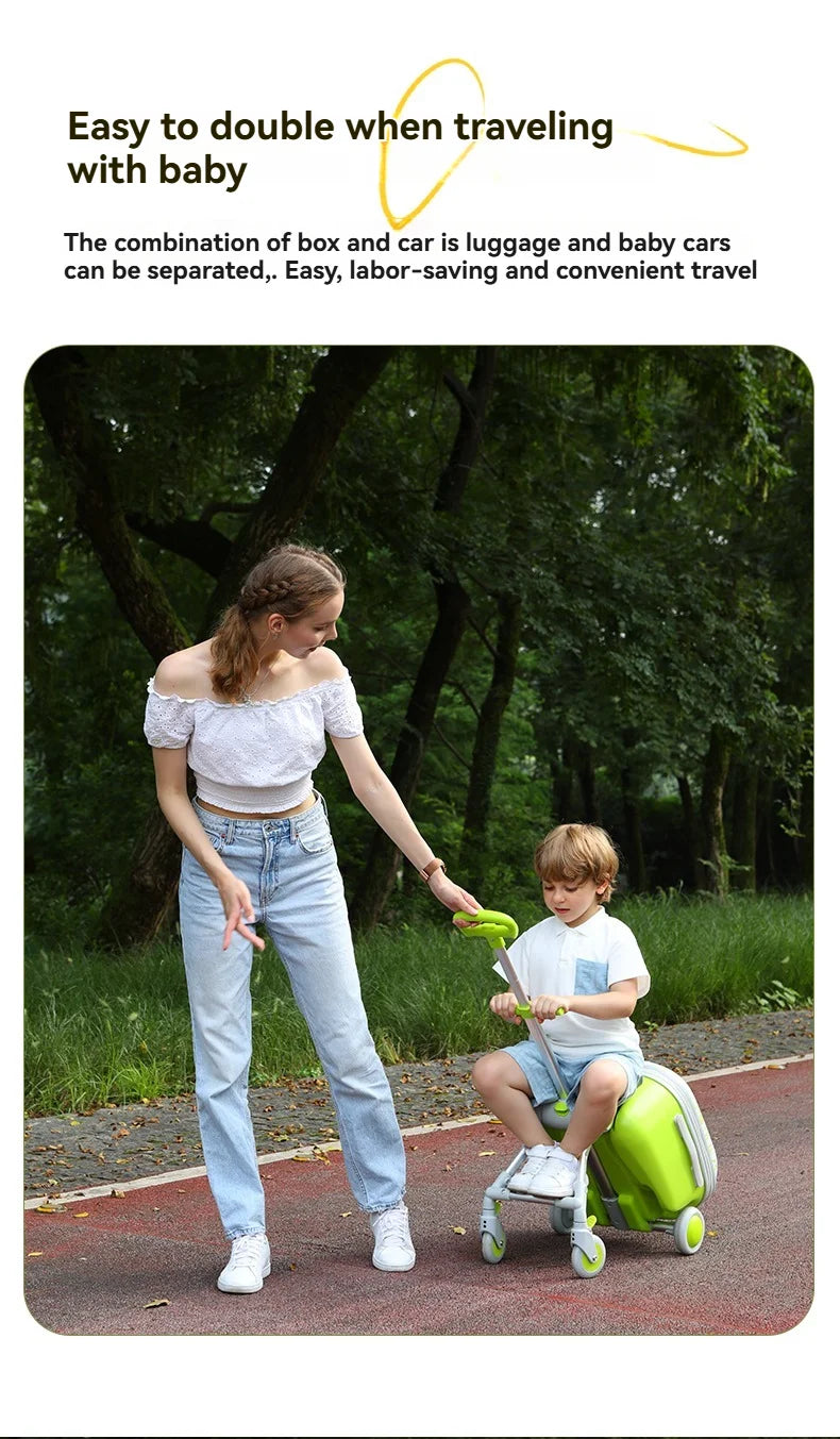 La valise poussette enfant combine confort, rangement et praticité : l’enfant s’y repose pendant que le parent la tire sans effort.