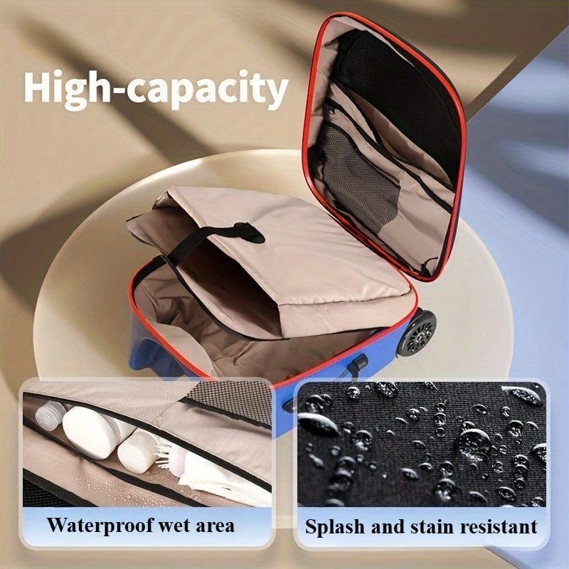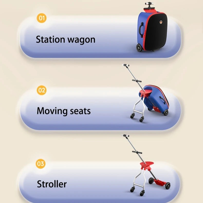 La valise poussette enfant combine confort, rangement et praticité : l’enfant s’y repose pendant que le parent la tire sans effort.