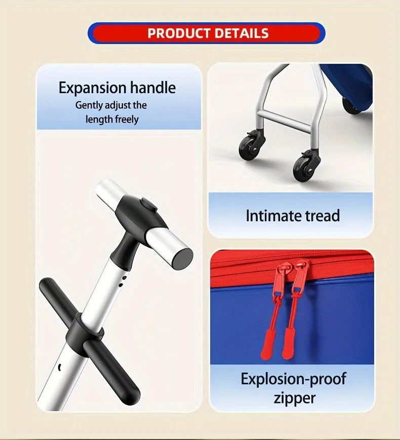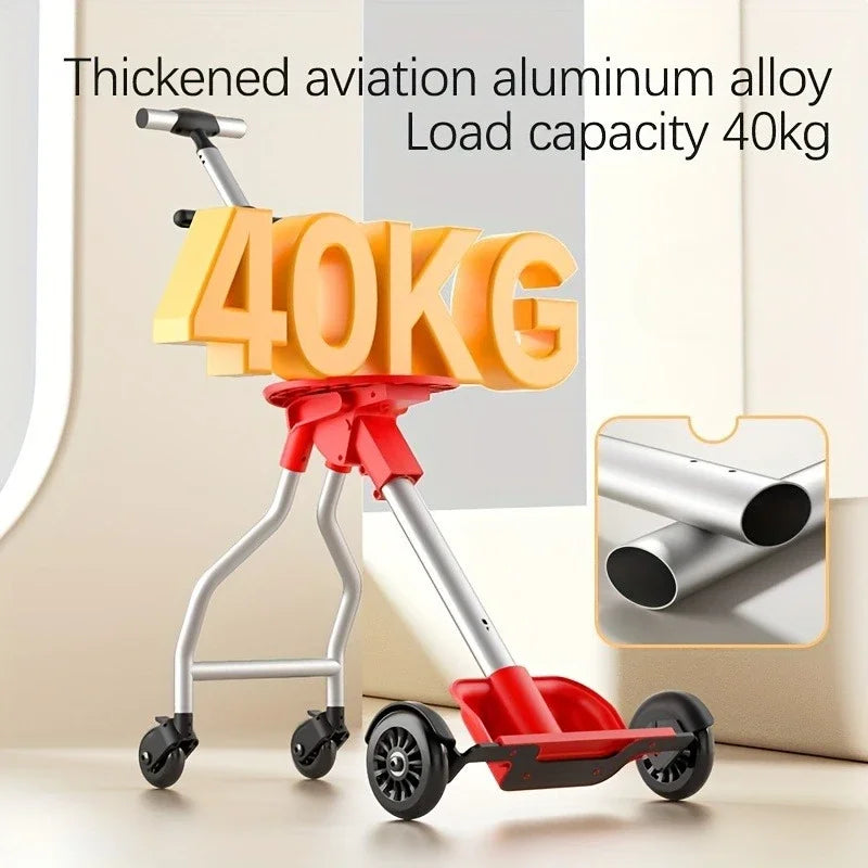 L’assise intégrée permet à l’enfant de se poser à tout moment, et les roues pivotantes facilitent la progression sur les sols d’aéroport. La poignée ajustable offre une prise confortable, idéale pour éviter la fatigue lors des déplacements prolongés.